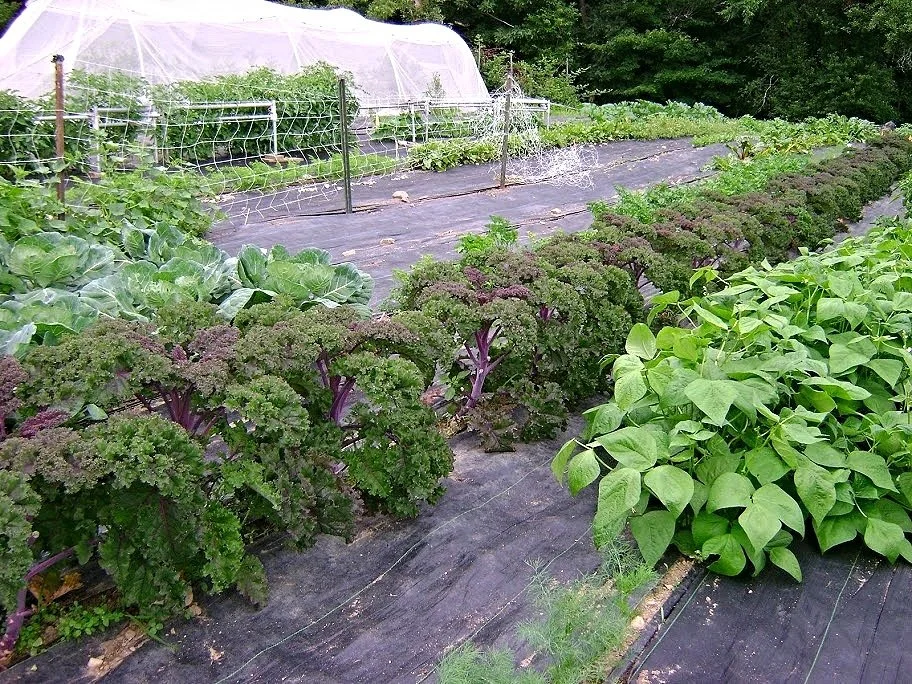 There are flowering plants scattered throughout the gardens to encourage pollinators and beneficial insects. This allows for natural pest control and better fruiting.